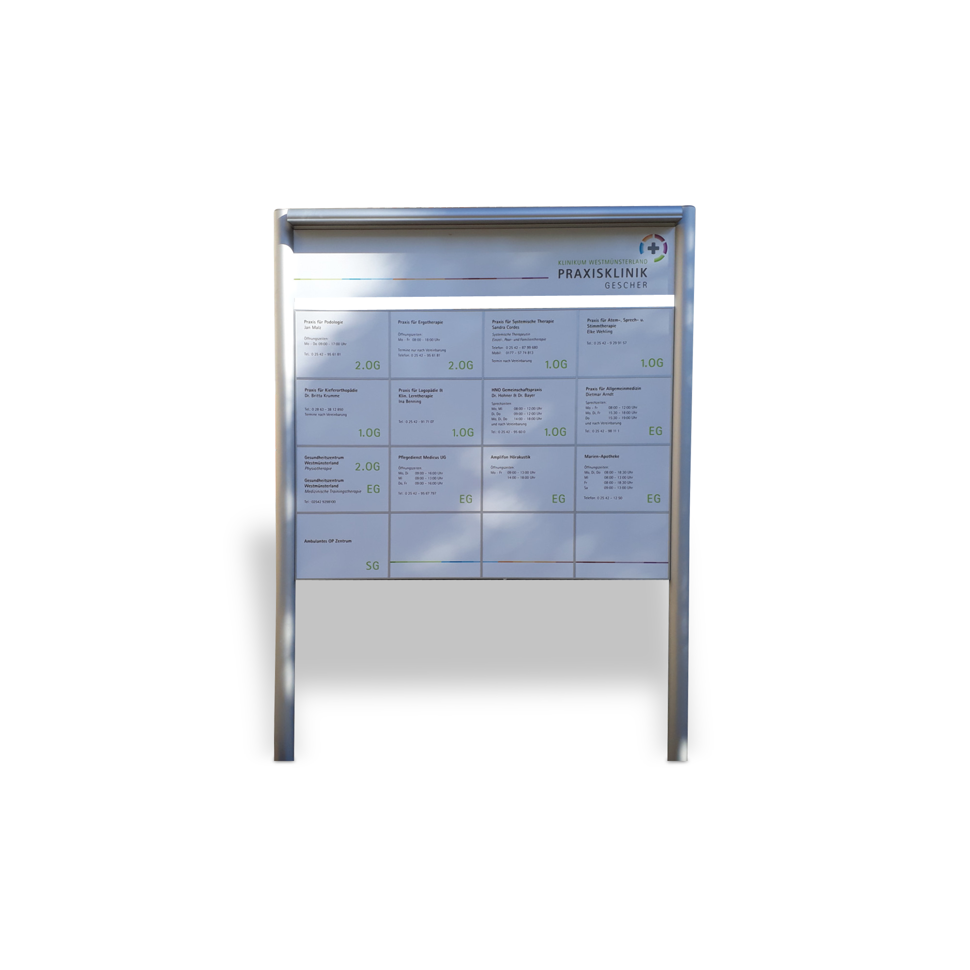 Namensschilder, Deckenhänger-Wegweiser, Fahnenschilder, Infotafeln, Leitsystem-Beschilderung, Bannerrahmen, Werbepylone, Außen-Firmenschilder, Standschilder mit Edelstahl-Pfosten, LED-Leuchtkästen, LED Leuchtschilder, Lichtfluter, Lichtwerbung, Ladenschilder, Leuchtkasten, Schaukasten